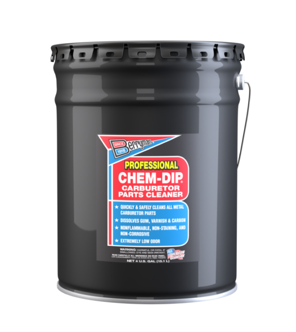 Berryman® Professional Chem-Dip Carburetor Parts Cleaner quickly dissolves carbon, gum, varnish, fuel residue, and other deposits from carburetors in 15 to 30 minutes without heat, agitation, or aeration.